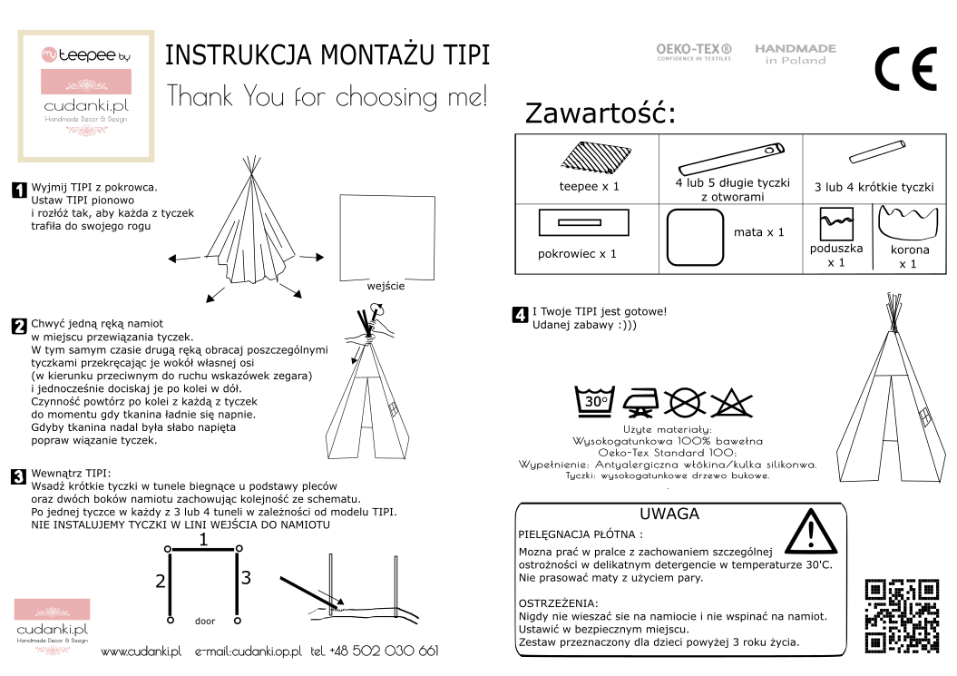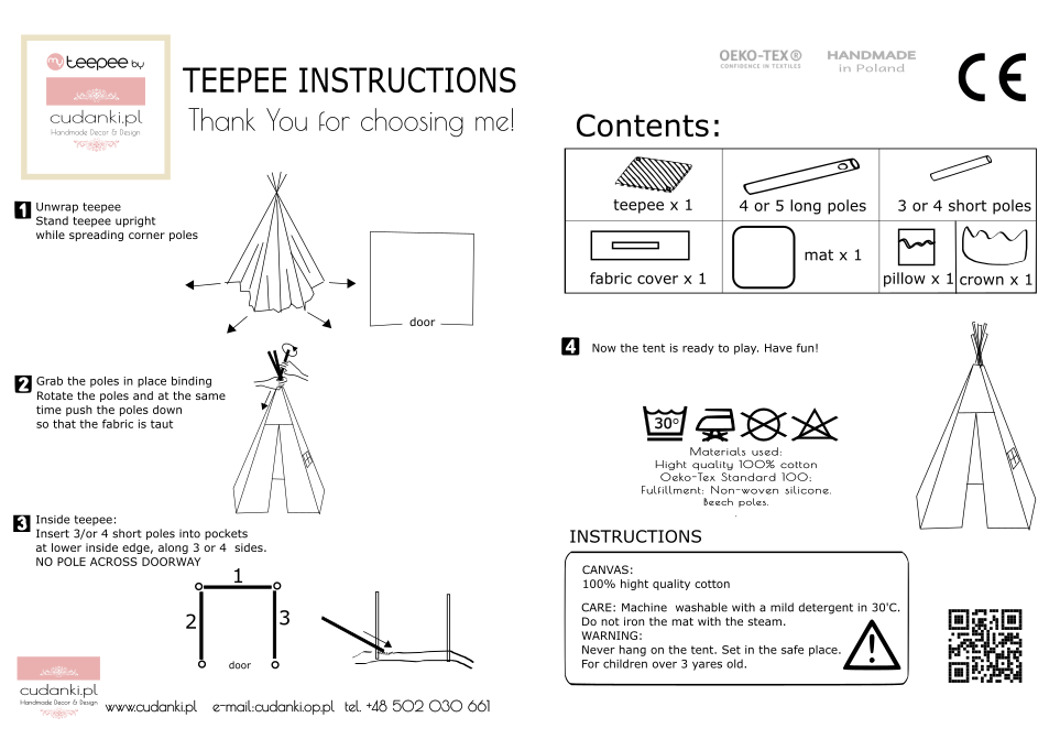 HANDMADE IN POLANDAll products are hand sewn in Poland, with child-friendly fabrics.Fabrics and filling mats and cushions are certified Oeko-tex 100.