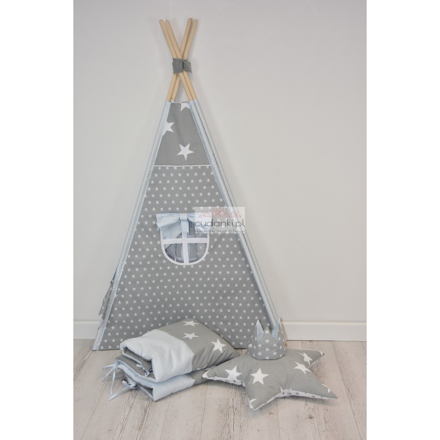| The sets INCLUDES | 1/ Tipi Tent with spars with beech roods ; 2/ The Standard mat - 4 cm /The PREMIUM quilted mat 6-7 cm thick; 3/ 1 pilow filled with an approved silicone balls; 4/ Cotton cover; 5/ Cotton soft crown for play, 6/ 3 Stabilizers od the attitudes |