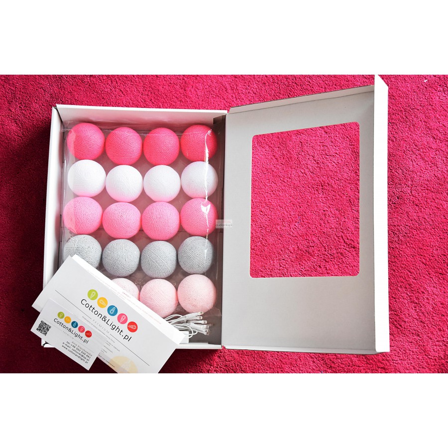 Cottonki to oryginalne bawełniane kolorowe kule, które w połączeniu z przewodami świetlnymi, stworzą przytulny ciepły klimat i pięknie ozdobią Twoje wnętrze. Nasze kule zostały wykonane ręcznie z niezwykłą precyzją i starannością.