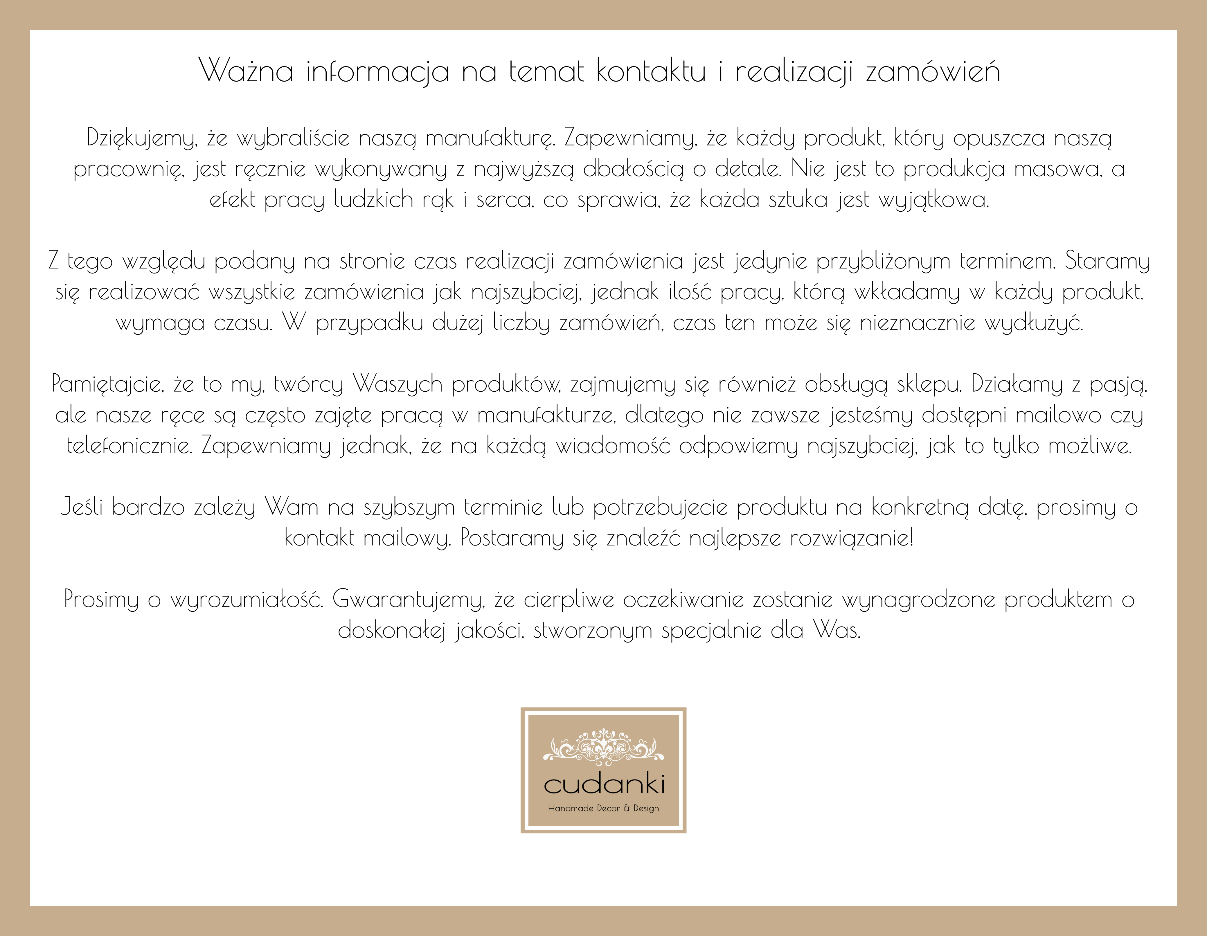Towar wykonywany na zamówienie- czas realizacji- Naturalne 60 - 75 dni roboczych.