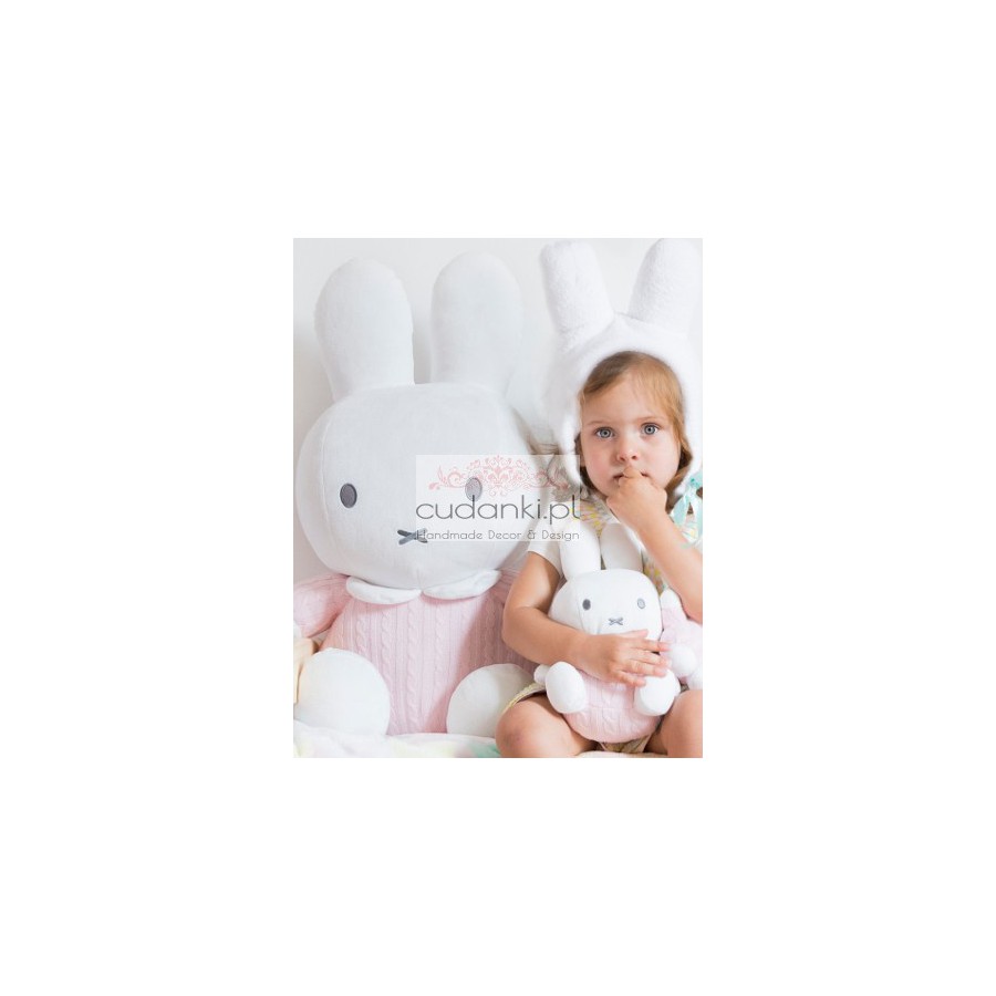 OPISSympatyczna i bardzo bardzo duża przytulanka - króliczka Miffy w tkanym, różowym sweterku. Wykonana z bezpiecznych dla dzieci materiałów, posiada certfikat bepieczeństwa CE oraz spełnia wszelkie europejskie normy. Doskonała na prezent będzie idealnym towarzyszem wszystich dzieci. Świetnie prezentuje sie również jako poducha w dziecięcym pokoju oraz jako element wystroju. Wielkość 60cm Bogata gama kolorystyczna pozwala na wyczarowanie króliczka wyjątkowego i niepowtarzalnego. | |